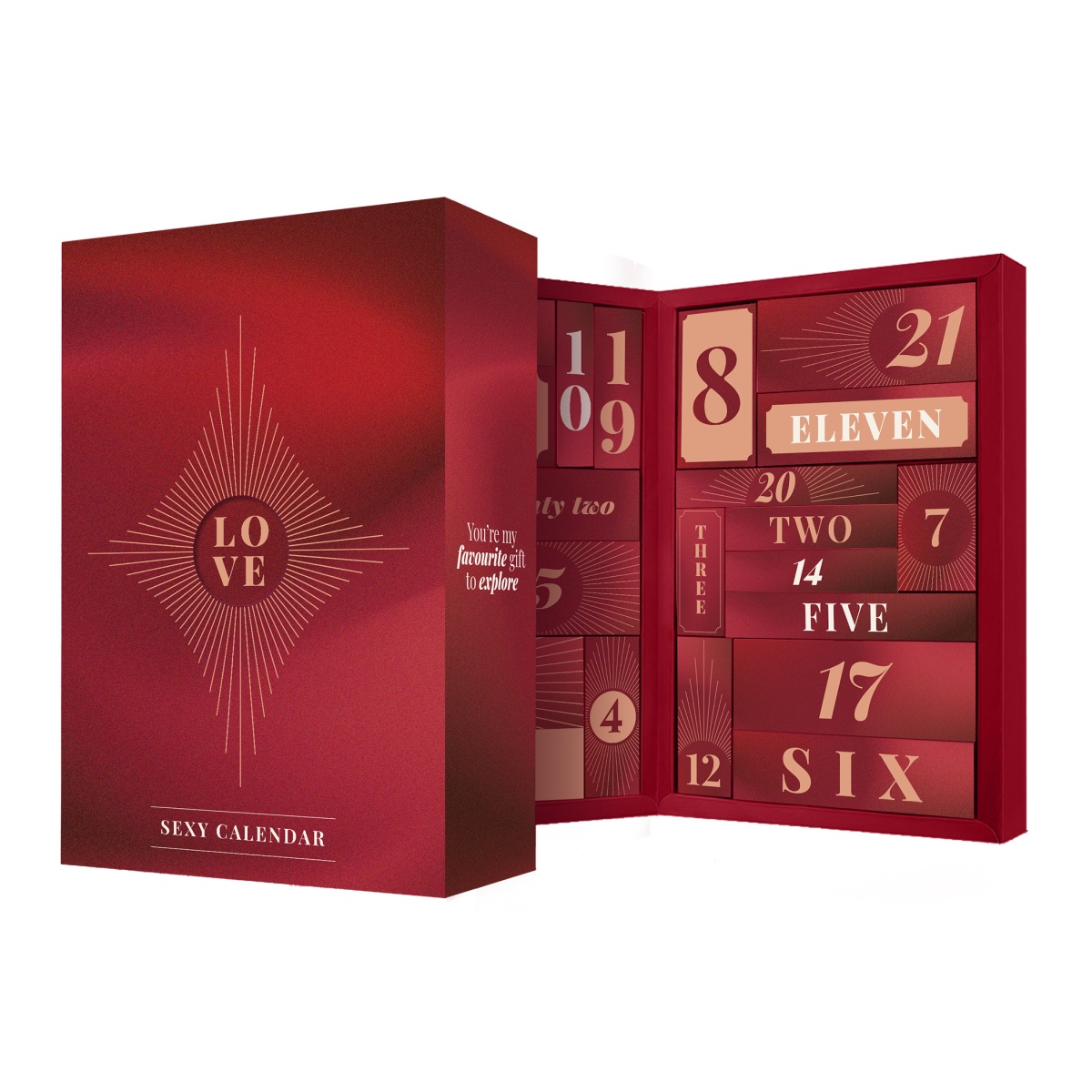 Perfektní jako dárek pro partnera, ale i jako záminka, jak prolomit ledy s někým, kdo ve vás probouzí touhy. Pokud hledáte originální způsob, jak dát najevo své city, tohle je vaše šance. Skutečná vášeň začíná za prvním okénkem.