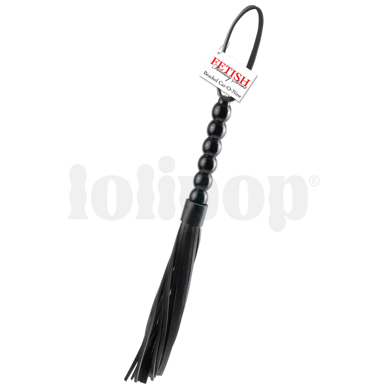 Beaded Cat O Nine - kožený bič s dřevěnou rukojetí
