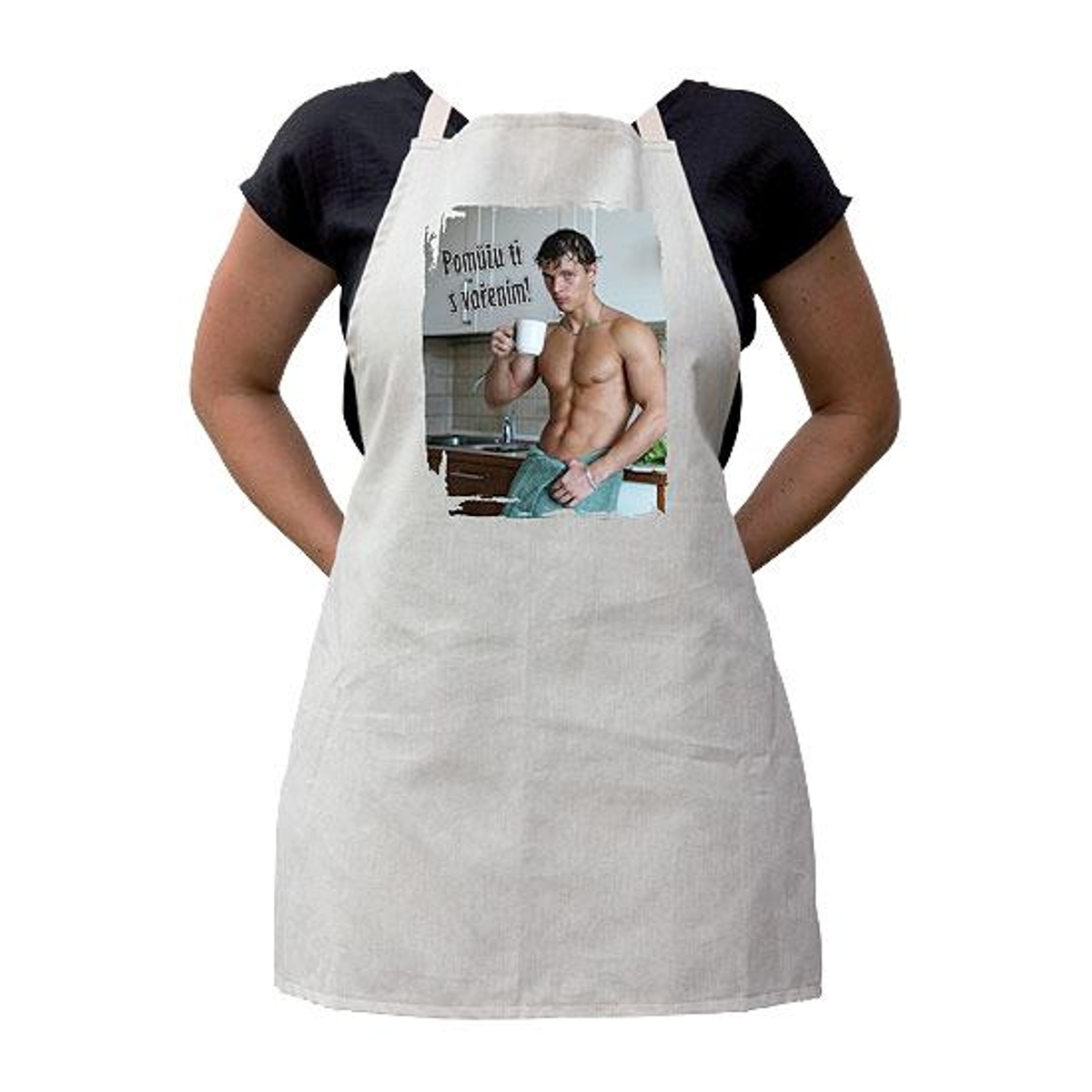 Jste na vaření sama a ráda byste alespoň jednou za čas přivítala pomoc v kuchyni? Pokud se vám nepovede přesvědčit vaši drahou polovičku, nezoufejte. Pořiďte si tuto fantastickou zástěru Bohemia GIFTS a buďte nad věcí. originální a vtipná tématika sexy chlapa na hrudi s nápisem Pomůžu ti s vařením!, který vás nenechá na holičkách. Zástěra je s láskou vyrobena v České republice a je z kvalitní přírodní bavlny. Její délka 75 cm padne všem a zabrání případné nehodě u sporáku. Stačí si ji nasadit okolo krku a zavázat ji klasicky v pase. Tisk je proveden digitální inkoustovou technologií. Vykouzlete si úsměv na rtech hned v prvních chvílích příprav.