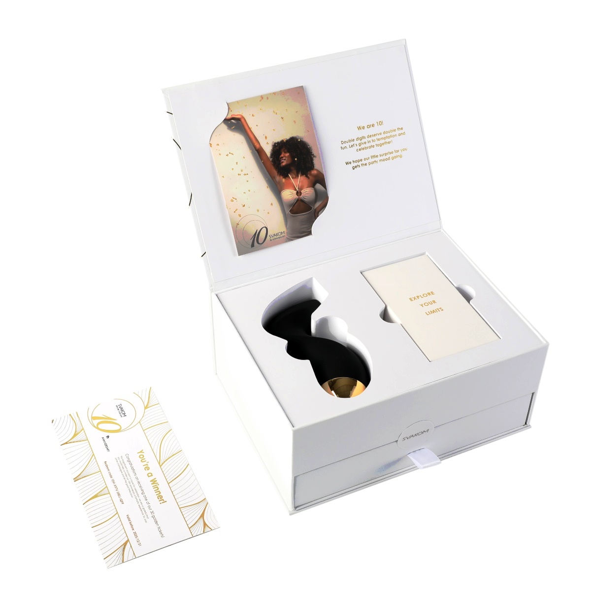Svakom to s narozeninovou oslavou myslí skutečně vážně, a tak náhodně přidal do třiceti takovýchto dárkových boxů speciální zlatou kartičku. Šťastlivci tak naleznou v krabici něco navíc. Majitel této zlaté karty získá od Svakomu 10 pomůcek zdarma. Co víc si přát?