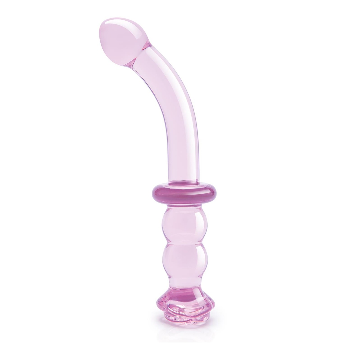 Toto skvostné dildo výjimečného elegantního designu romantické růžové barvy vás nadchne na první pohled. Je vyrobeno z vysoce kvalitního a výjimečně odolného borosilikátového skla, které vám dopřeje nejen dokonale hladký povrch, ale také mimořádné vlastnosti. Unikátní tvar pevného zahnutého ramene s výraznější zesílenou špičkou báječně masíruje bod G, zatímco si můžete užívat vytvořený tlak. Má bezpečnostní zarážku pro vaše maximální pohodlí a zakončení rukojeti v podobě decentní růžičky.