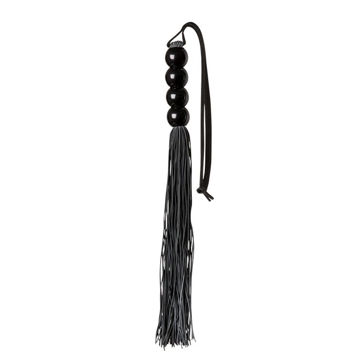 Černé důtky SILICONE FLOGGER WHIP značky Guilty Pleasure s tenkými třásněmi, vyrobenými z hypoalergenního silikonu, které jsou důmyslně vsazeny do odolné rukojeti v podobě korálek. Tyto středně velké důtky jsou ideální pomůckou pro lechtání nebo smyslný výprask. Jsou velmi odolné a flexibilní i pro intenzivnější hrátky.
