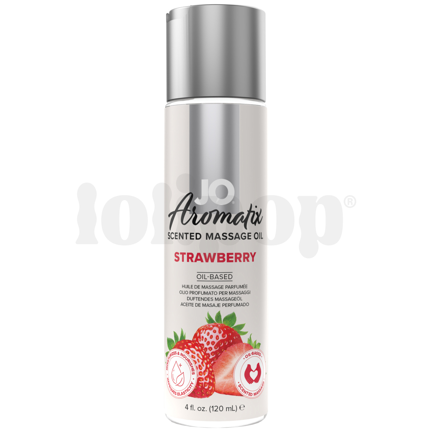 JO Aromatix vyživující veganský masážní olej jahoda 120 ml