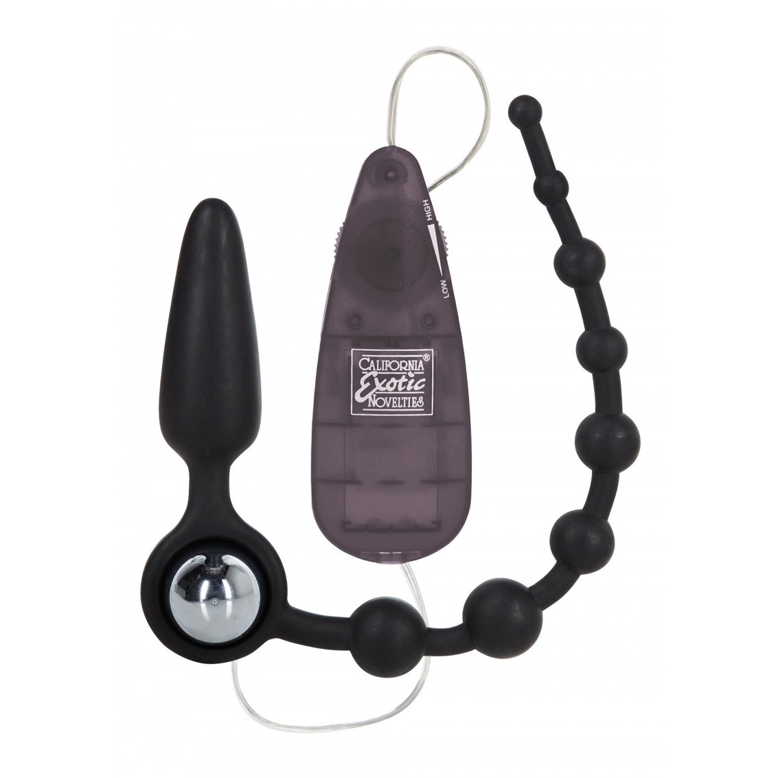 Černý anální kolík Booty Call BOOTY Double DARE z californské kolekce Booty Call doplněný o vibrační vajíčko na kabelové dálkové ovládání. Kolík propojený s korálky lze použít samostatně nebo spolu s vibračním vajíčkem, které se jednoduše zasune do poutka kolíku. A pak už jen stačí dálkovým ovladačem pomocí otočného kolečka nastavit intenzitu vibrací a nechat se unášet na vlnách rozkoše. Tvar análního kolíku je menší, kuželovitý, korále se stupňujícím se průměrem 8 kuliček, uprostřed s manipulačním očkem. Kolík je vyrobený z prvotřídního silikonu, který je zcela hypoalergenní, vhodný i pro alergiky. Vibrační vajíčko je z ABS plastu se stříbřením. Pohon vajíčka zajišťují 2 x AAA baterie. Kolík je vodotěsný (vajíčko nikoliv) a proto nic nebrání jej použít při vodních hrátkách třeba ve sprše nebo ve vaně. Nezapomínejte na heslo, kdo maže ten jede a používejte lubrikační gely na vodní bázi. Po použití pomůcku řádně omyjte teplou vodou a antibakteriálním mýdlem. Další produkty značky CALIFORNIA EXOTIC najdete zde.