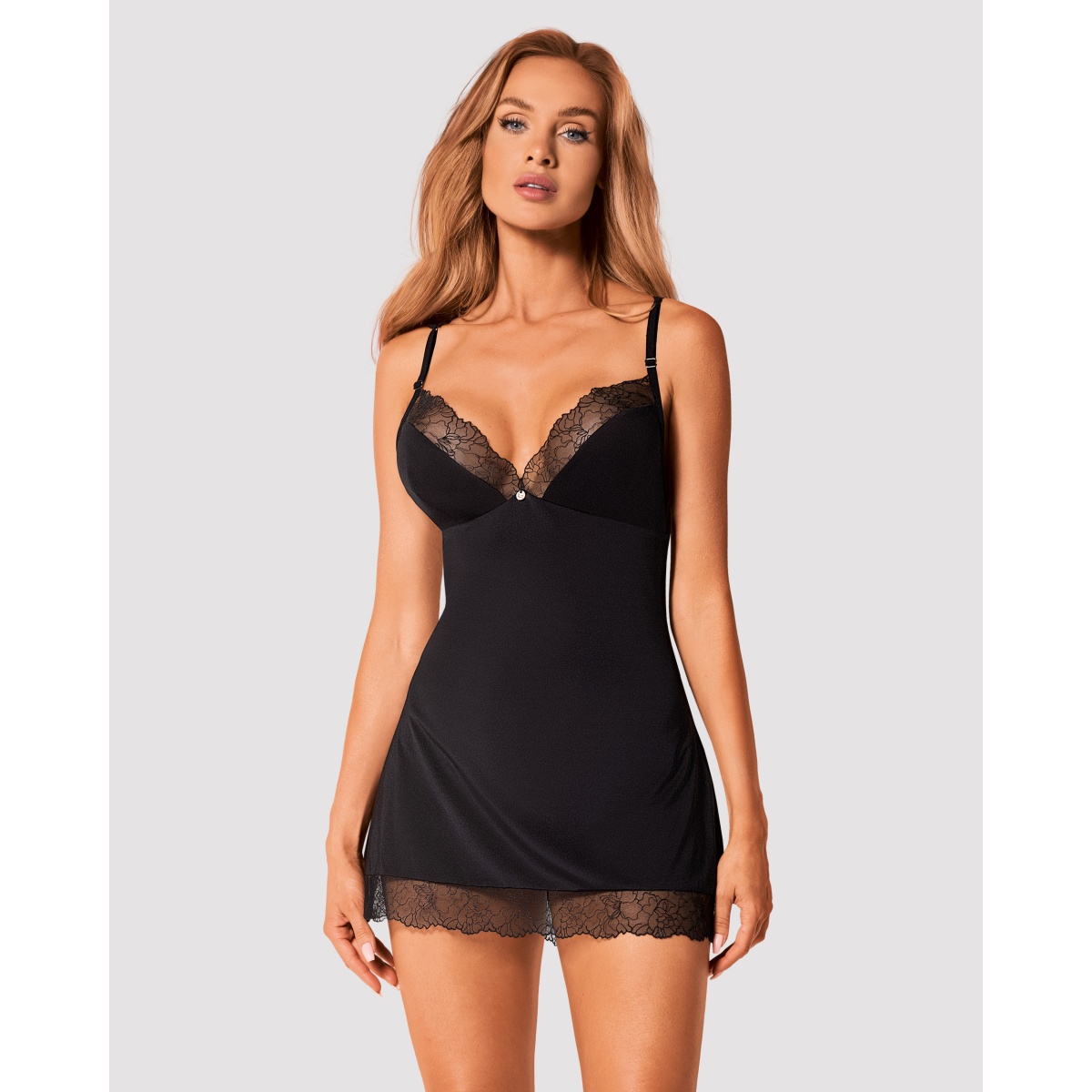 Milujete luxusní spodní prádlo, které je elegantní, sexy a zároveň neodolatelně pohodlné? Košilka Obsessive BELLA ROU v temně černé barvě bude dokonalým kouskem do vašeho šatníku. Hluboký výstřih a spodní část košilky jsou lemovány svůdnou krajkou s moderním květinovým motivem. Materiál je chladivý a neuvěřitelně příjemný na dotek, jeho lehkost a pružnost zajistí perfektní pohodlí. střih krásně zvýrazní vaše křivky a dvojitá překřížená ramínka na zádech podtrhnou půvab ženského těla. Chcete si připadat neodolatelná? Věřte, že s tímto kouskem jistě nešlápnete vedle. Připravte vašemu partnerovi romantický večer s překvapením a zažijte smyslné chvilky za dveřmi ložnice…
