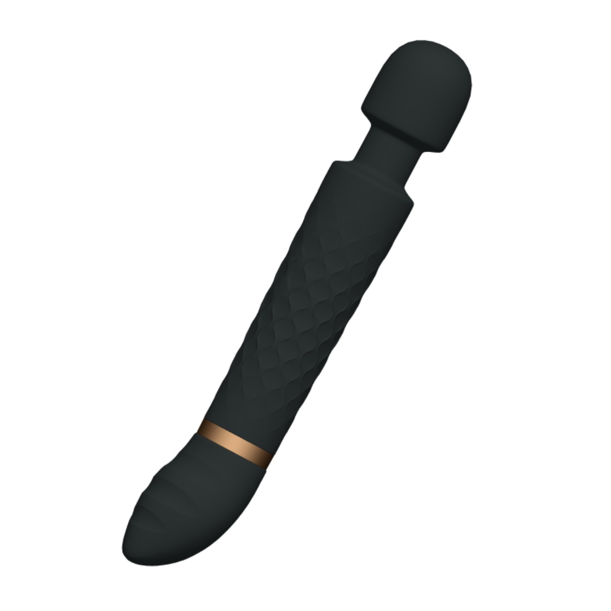 Náročný den? Uvolněte své tělo i mysl společně s vaší polovičkou a dopřejte si vzrušující erotickou masáž vedoucí k luxusní předehře dokončenou kvalitním a vášnivým vyvrcholením. Tento vibrátor MELO M1220 v elegantním provedení černé barvy ozdoben proužkem ze zlatého ABS plastu vám nabídne opravdu široké spektrum využití. Je vyroben z ultra hebkého a sametově jemného prémiového silikonu, díky kterému se budete cítit jako v bavlnce. Vychutnejte si jeho funkci 2v1 a prožijte neopakovatelné momenty naprosté rozkoše. Flexibilní masážní hlavice na jedné straně a vibrátor s úzkou zahnutou špičkou s výraznými drážkami na straně druhé je ideální pro párové hrátky, dokonalou relaxaci i pikantní předehru. Malá hlavička se dostane do všech koutů těla a uvolní svaly a napětí. Lze jej také použít ke stimulaci bradavek, klitorisu a jiných erotogenních míst, můžete objevit tajemnou touhu análního dráždění i klasického vaginálního uspokojení. Má pevné tělo s mřížkovanou strukturou, která zabrání jeho klouzání v ruce a je lehký pro pohodlnější manipulaci. Ovšem jeho vlajkovou lodí jsou jeho dva extrémně výkonné a zároveň tiché motory pracující samostatně. Každý z nich vás potěší svými 12 hlubokými vibračními a pulzačními režimy přímo bušící na dveře bouřlivé extáze. Jeho vodotěsné provedení vám dovolí vzít si jej s sebou do společnosti teplé vody ve sprše či ve vaně. O jeho energii se postará přiložený USB kabel, kterým jej snadno nabijete.