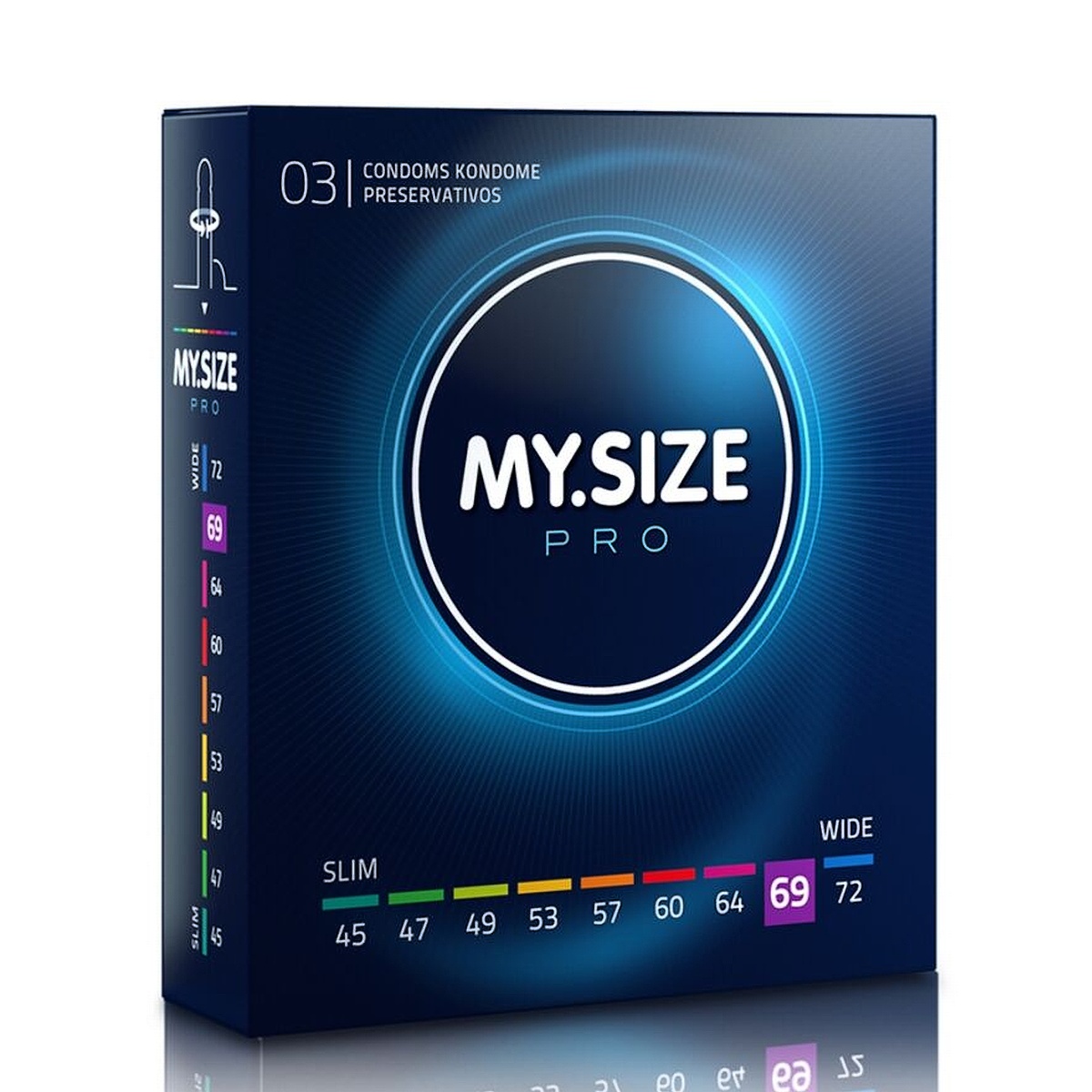 Pánové, vaše vzrušení a intenzivní prožitky jsou přímo závislé na vašem pohodlí. Dopřejte si dokonale padnoucí velikost a vychutnejte si i se svou drahou polovičkou novou dimenzi chráněného a bezpečného sexu. kondomy značky MY.SIZE jsou jedinečné právě v tom, že si vyberete šířku takovou, aby vám byl tak akorát. Nevhodný kondom nepřinese požadované potěšení, klouže nebo je naopak velmi těsný, což zvýší nepohodlí. Tento kondom má jmenovitou šířku 69 mm a délku 16 cm a je ideální pro průměr penisu přibližně 4,5 cm až 4,8 cm. Disponuje rezervoárem a snadno se nasazuje.