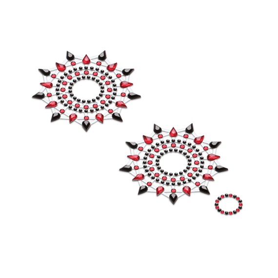 Čeká vás žhavý večer, kdy se chystáte svého milého překvapit striptýzem? Máme pro vás úžasný šperk, kterým mu vyrazíte dech! Nálepky GLORIA glittering jewelry v černočervené barvě ozdobí vaše ňadra decentně, přesto vyzývavě. Jsou vyrobeny z drobných křišťálů. Šperky jsou opatřeny lepidlem šetrným k pokožce a lze je snadno upevnit i sundat. Se speciálním lepidlem je můžete používat opakovaně.