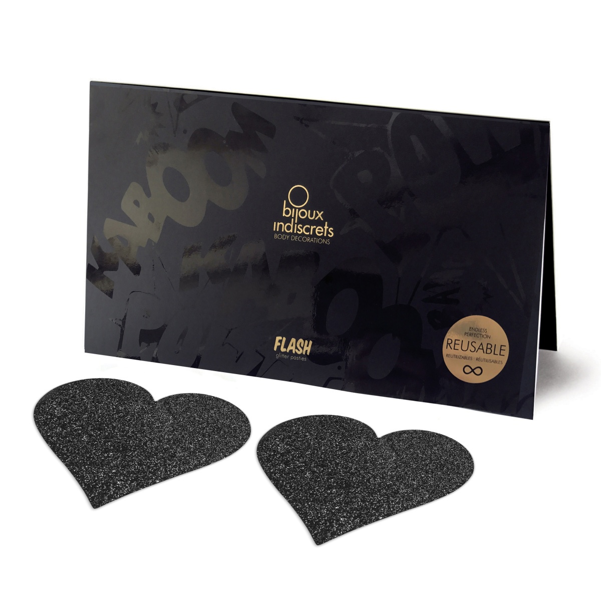 Chcete škádlit svou drahou polovičku smyslným způsobem? Zahalte své erotogenní zóny, kterré bude chtít vidět ještě více a podpořte jeho narůstající touhu po vašem těle. Vezměte si na sebe tyto elegantní nálepky na bradavky BIJOUX INDISCRETS FLASH HEART v sexy černé barvě s krásným třpytivým efektem. Dokáží zajímavě ozvláštnit sexuální večer, nažhaví touhu a chtíč. Unikátní design ve tvaru srdíčka ozdobí jakékoliv poprsí. Ať už jej použijete k erotickému prádlu nebo v rámci striptýzových hrátek, zakryje vaše partie tak jak má a díky silikonovému lepidlu budou pevně držet na svém místě. To navíc nabízí možnost opakovaného použití. Doporučujeme nálepky odkládat do původního balení, aby se zamezil kontakt s prachem. Kdyby jste přeci jen získali pocit, že lepící strana ztrácí svůj účinek, opatrně ji opláchněte mýdlovou vodou a nechejte řádně oschnout. Dárková obálka pak připraví krásné překvapení.