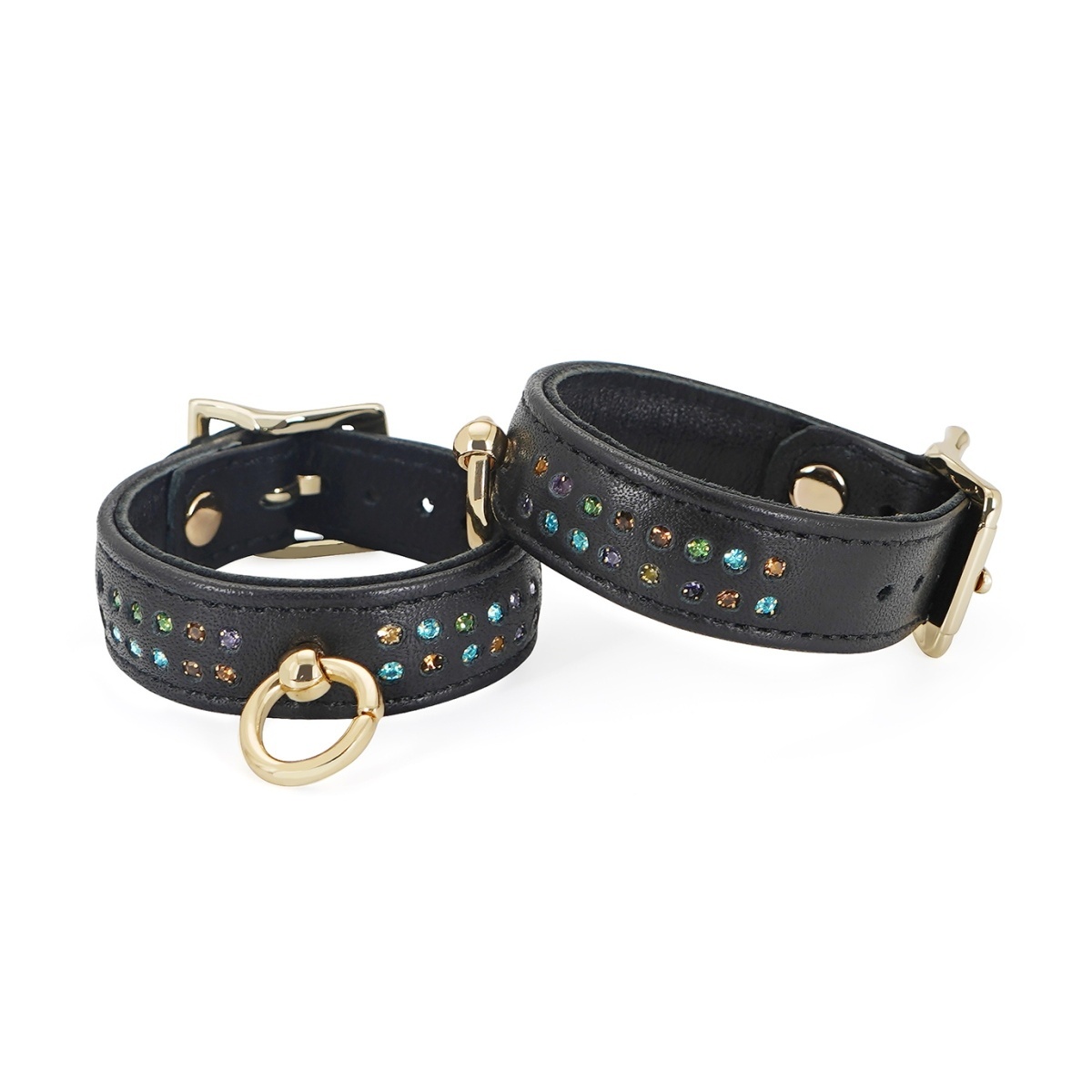Každá rozpustilá subinka teď může doslova zazářit. Dopřejte si nekonečnou dávku luxusu vašich nezbedných BDSM hrátek s těmito parádními pouty na nohy unikátní kolekce značky Liebe Seele. Vysoce kvalitní zpracování produktů této japonské značky a luxusní materiály vás naprosto okouzlí a dodají vám šmrnc. Pouta na kotníky temně černé barvy jsou vyrobena z pravé hovězí kůže, která je pevná a velmi kvalitní. Připínací řemínky jsou tenčí, a tak krásně ozdobí nožky každé dámy, vyznávající i něžnější styl bondáže. Navíc štrasové kamínky v několika barvách působí stejně jako nádherný bižuterní šperk. Vybraná hovězina je zároveň velmi pohodlná i na své vnitřní straně, a tak se nemusíte obávat šrámů ani po drsnější jízdě. Jsou ozdobena kovovými O kroužky v půvabné zlaté barvě. Zapínají se na přezky a nabídnou tak univerzálně širší nastavení velikosti, které padne téměř každému. Jemnějšími karabinami s řetízkem vaši subinku pevně spoutáte a následný ložnicový scénář je zcela ve vaší režii. Luxusní balení bude parádním dárkem pro nejednu podřízenější uličnici.