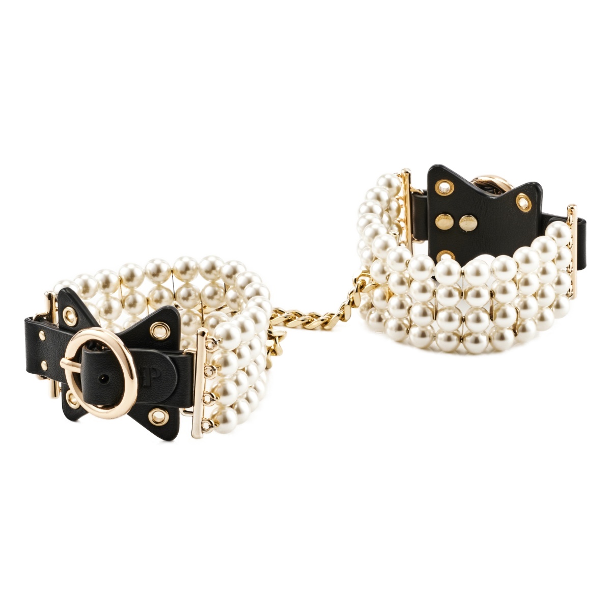 Tato pouta na zápěstí v černém designu jsou vyrobena z měkké veganské imitace kůže ve tvaru mašle, která zajišťuje pohodlné nošení a je nezávadná pro lidskou pokožku. Zdobí je perlové prameny, jež se půvabně třpytí a podtrhují svůdný dojem. Celý design doplňují zlaté kovové prvky, které dodávají luxusní nádech i pevnost. Díky nastavitelnému zapínání na přezku snadno padnou většině uživatelů a poskytnou bezpečné i vzrušující spoutání prostřednictvím odnímatelného řetízku. Tato pouta budou také ideální jako doplněk k erotickému prádlu, odvážnému oblečku, ale i ke stylovým role-play hrátkám inspirovanými bondage praktikami.