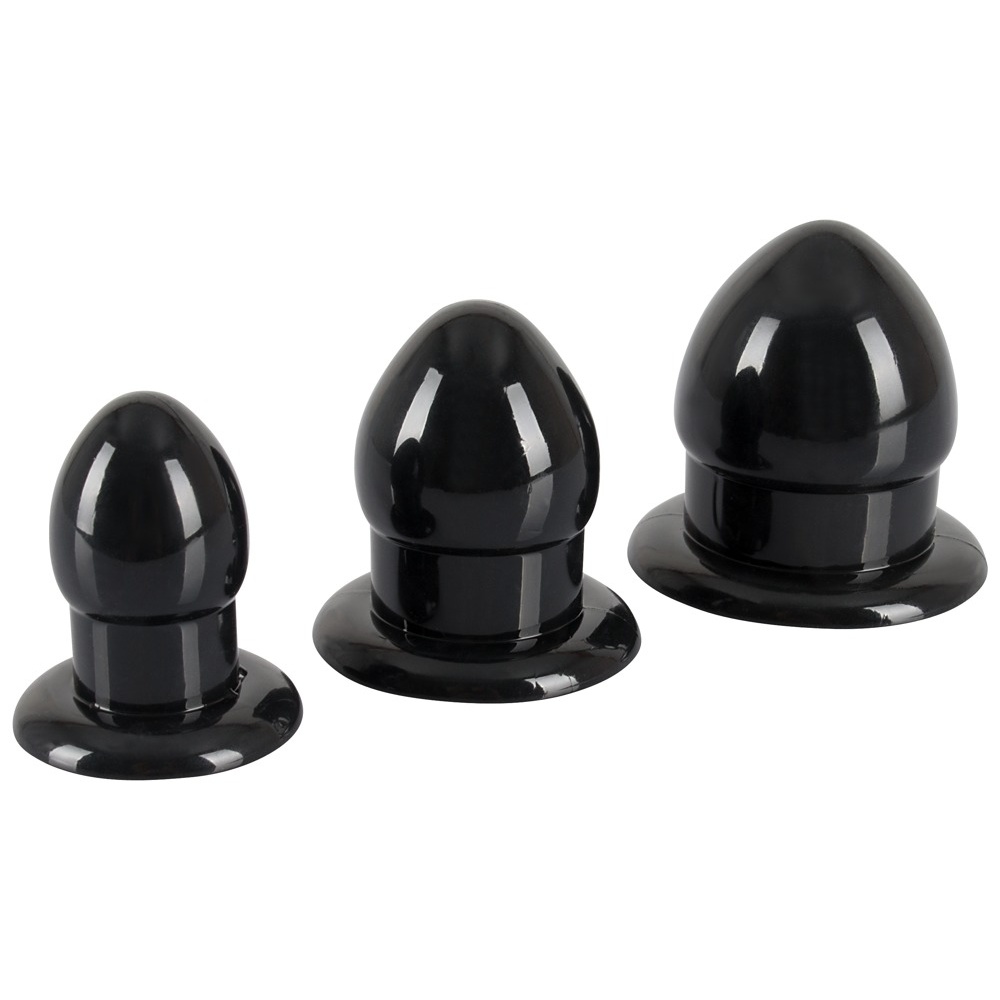 Sada 3 análních kolíků You2Toys Anal Stretching Plug různých velikostí, které vám zajistí dokonalou anální stimulaci a potěšení. Jsou vhodné pro muže i ženy. Anální kolíky, které sada obsahuje, mají různé velikosti, nejmenší z nich je dlouhý 5,2 cm, střední 5,7 cm a největší 6,2 cm. Každý kolík disponuje bezpečnostní základnou a má zúženou špičku pro snadné zavádění. Jak si s kolíky budete hrát, záleží jen na vás. Stimulovat můžete sebe nebo vašeho partnera či partnerku. Sada je vyrobena z příjemného pro tělo nezávadného materiálu TPR, jsou zcela vodotěsné, odolné a mají tajemnou lesklou černou barvu. V případě lubrikace doporučujeme gely na vodní bázi. Po použití jistě omyjte teplou mýdlovou vodu a následně taktéž použijte čistič erotických hraček.