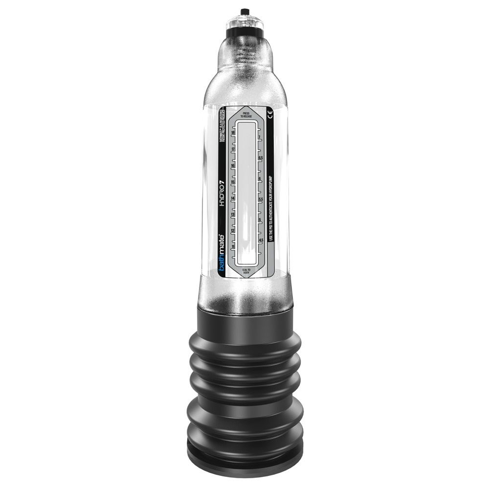 vodní vakuová pumpa BATHMATE HYDRO 7 clear má stejně skvělé vlastnosti jako Hydromax X30, Hydromax X40 a Hydromax X20. Je vhodná pro muže, kteří mají velikost penisu v erekci mezi 12,5 -17,5 cm. Vakuová pumpa od značky Bathmate je vyrobena z pevného a odolného materiálu té nejvyšší kvality. Pumpy a jejich komponenty jsou běžně testovány na 100 000 cyklů použití, což odpovídá minimálně 3 rokům běžného používání. Tato vakuová pumpa se snadno používá a během posledních let se stala doslova bestsellerem mezi muži, kteří chtějí změnit rozměry svého mužství. Všechny modelové řady značky BATHMATE najdete zde.