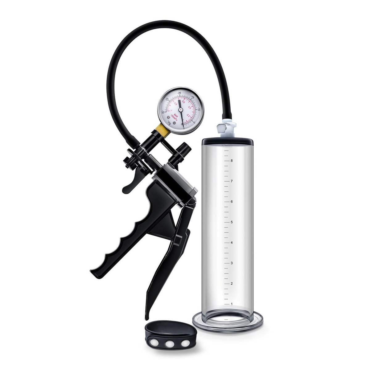 Pumpa obsahuje průhledný válec z odolného ASB plastu, který je zdravotně nezávadný pro lidskou pokožku. Disponuje pravítkem pro sledování vašich pokroků. Hadička je pak z hedvábně jemného silikonu a je zakončená jednoduchým mechanismem pro snadné nasazení na válec. Ruční pumpa černé barvy se pak chlubí velkým ukazatelem stavu vnitřního podtlaku a pro rychlé vypuštění vnitřního podtlaku je zde samozřejmě bezpečnostní ventil. Součástí balení je také silikonový erekční kroužek se třemi možnostmi nastavení velikosti.