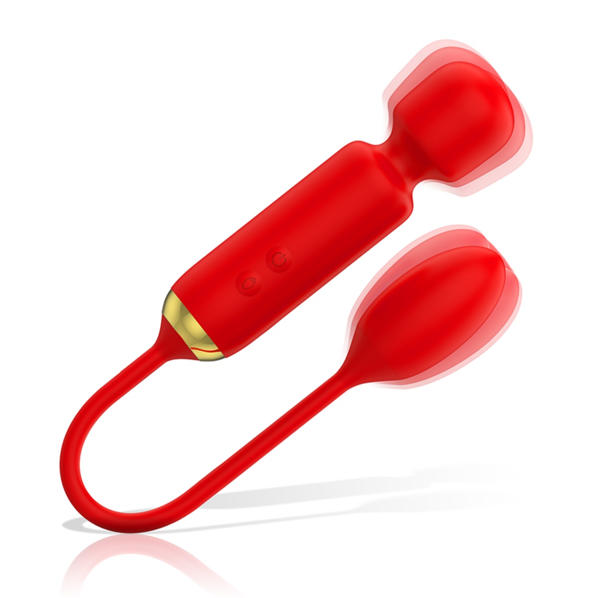 Dvojitý vibrátor sexy červené barvy se zlatým zdobením je vyroben z hedvábně jemného silikonu prvotřídní lékařské kvality, který je nezávadný pro lidskou pokožku a pohladí vaše partie s neuvěřitelnou něžností. Masážní vibrátor má flexibilní hlavici, která je malá a snadno se tak dostane do všech tajných zákoutí vašeho těla. Je vhodná také pro vnější stimulaci erotogenních zón jako je klitoris či bradavky. Zakončen je delší tenkou flexibilní stopkou, která nabídne na opačném konci vibrační vajíčko. Můžete jej použít vaginálně, avšak bude díky příjemnému hladkému povrchu a menší velikosti vhodný také pro milovníky análního potěšení včetně začátečníků.