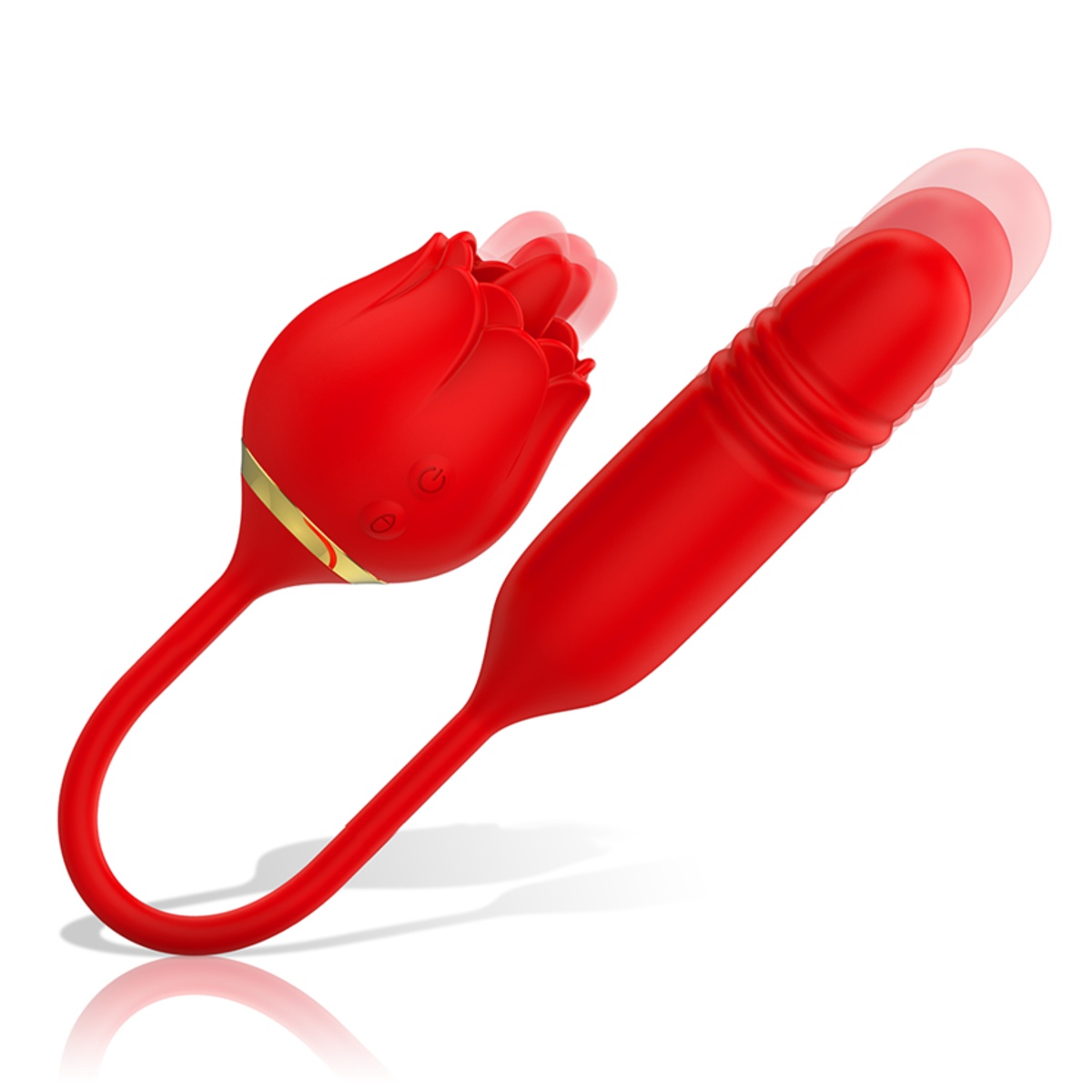 Unikátní stimulátor sexy červené barvy se zlatým zdobením ve tvaru růže je vyroben z hedvábně jemného silikonu prvotřídní lékařské kvality, který je nezávadný pro lidskou pokožku a pohladí vaše partie s neuvěřitelnou něžností. Poupátko se dobře drží v ruce a pohodlně se s ním manipuluje. Je vhodný pro vnější stimulaci erotogenních zón jako je klitoris či bradavky. Zakončen je delší tenkou flexibilní stopkou, která nabídne na opačném konci vibrátor s pohyblivou špičkou, která napodobuje kopulační pohyb. Můžete jej použít vaginálně, avšak bude vhodný také pro milovníky análního potěšení včetně začátečníků.