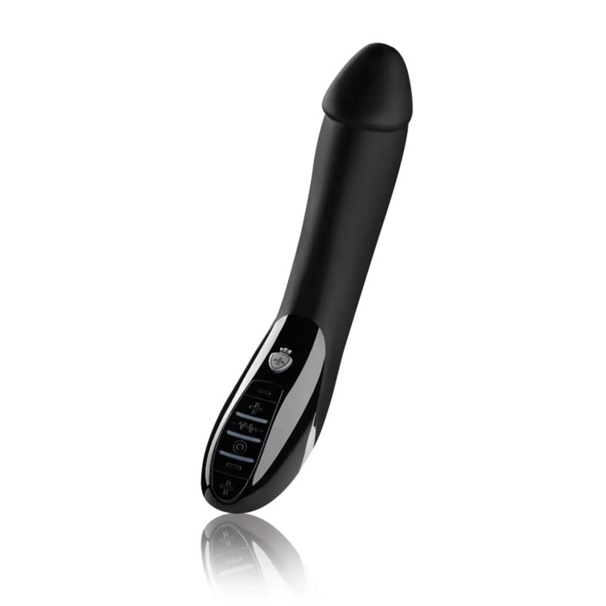 Tento báječný vibrátor v moderním designu elegantní černé barvy si zamilujete. Má flexibilní robustní tělo vyrobené z hedvábně jemného silikonu prvotřídní lékařské kvality, který je šetrný k lidské pokožce a se svým platinou vytvrzeným hladkým povrchem pohladí vaše partie s neuvěřitelnou něžností. Ergonomicky zahnuté tělo spolu se špičkou imitující žalud špičkově zacílí na bod G. Navíc je špička úzká a usnadní zavádění. Rukojeť z odolného ABS plastu disponuje panelem se šesti tlačítky pro intuitivní ovládání a dobře se drží v ruce pro pohodlnou manipulaci. Kovové logo pak slouží pro magnetické dobíjení.