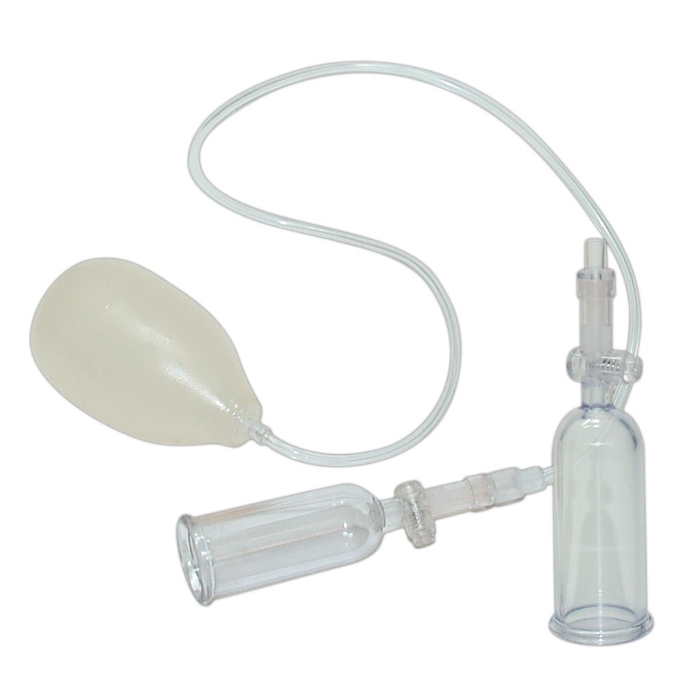 univerzální vakuová pumpička se dvěma sacími nádobkami k použití např. na bradavky či klitoris. Ručním pumpováním vznikne podtlak, bradavky či klitoris se zvětší, prokrví a zvýší se tak jejich citlivost. Speciální ventil na každé sací nádobce udrží vakuum bez připojené hadičky.